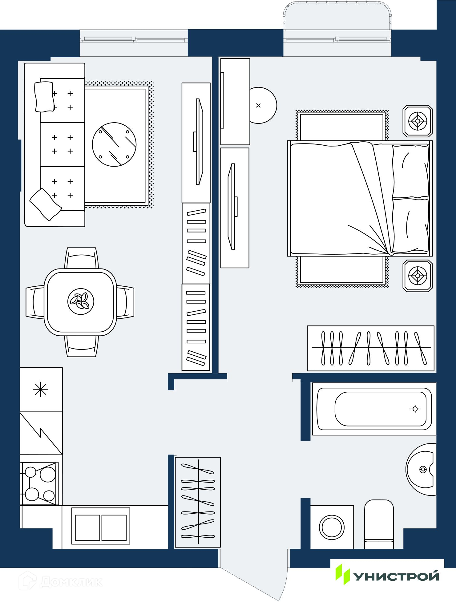 Планировка 1 комн. в ЖК ГРАНД БЕРЕГ